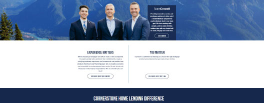 “Cornerstone knows how to build a team around a loan officer, allowing me to spend my time where it counts the most. A lot of times, this looks like chatting with referral partners so I can bring in more business. Cornerstone’s exceptional support takes clerical tasks off the table.”